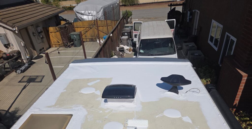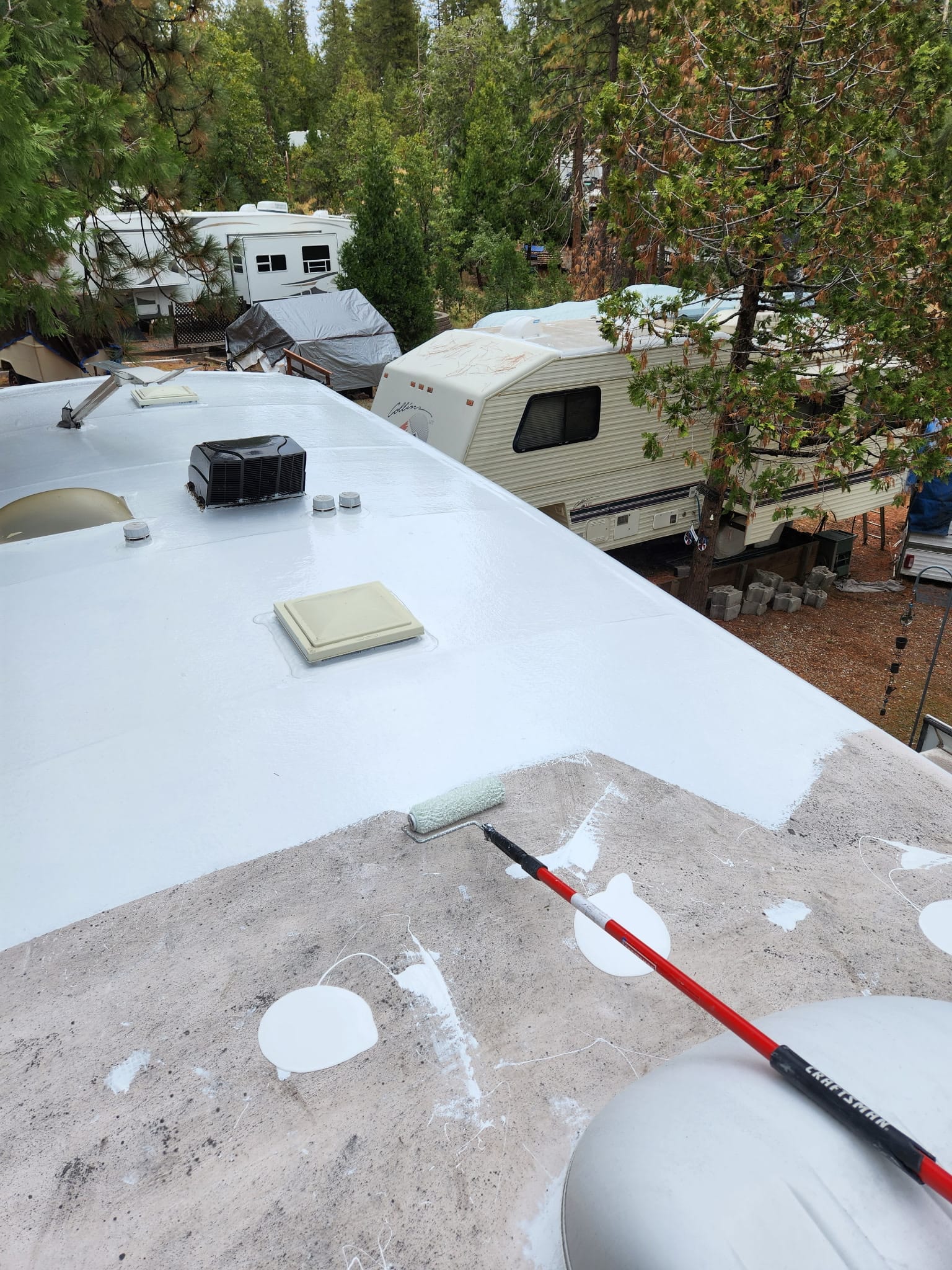 Application of high-quality roof coatings to protect your RV from leaks, UV damage, and weather exposure.